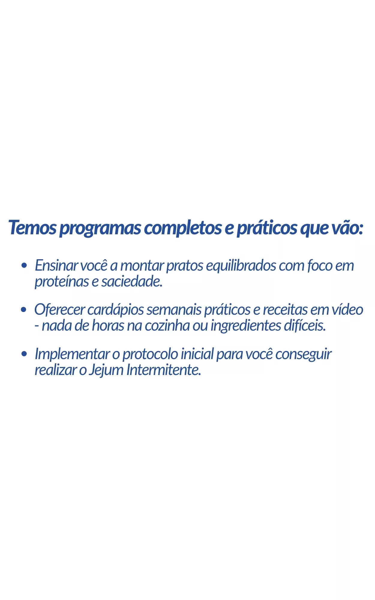 Enfatizamos sempre que nossos programas são pensados em muito mais do que o emagrecimento. A perda de peso com a boa alimentação é consequência direta de uma boa estratégia alimentar. Há participantes que experimentam perdas maiores e mais rápidas, mas há grande influência de quantos quilos você está acima do peso atualmente, qual é o tipo de dieta que você praticará, qual o tipo de protocolo que você vai usar e se você vai implementar o jejum intermitente na sua semana.
