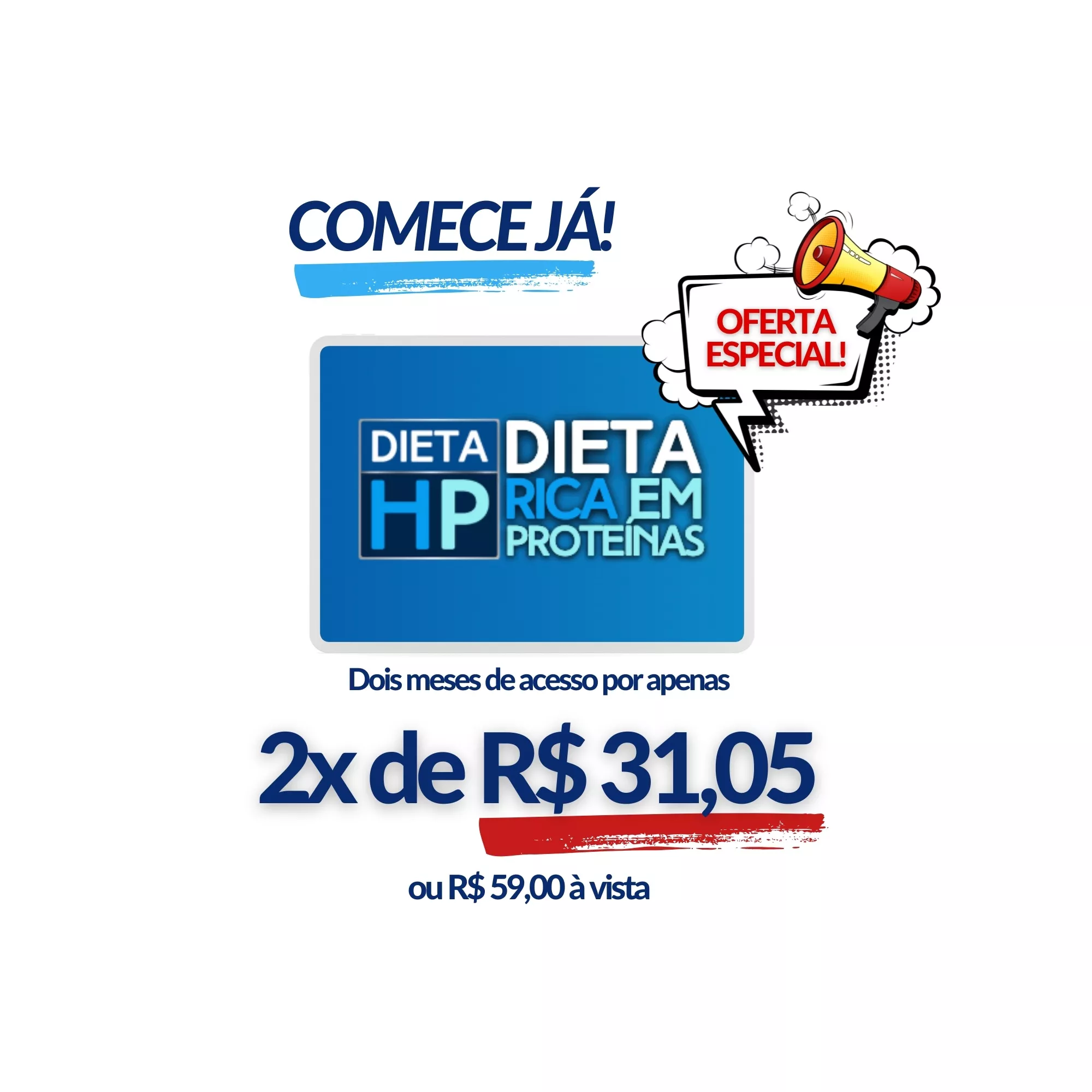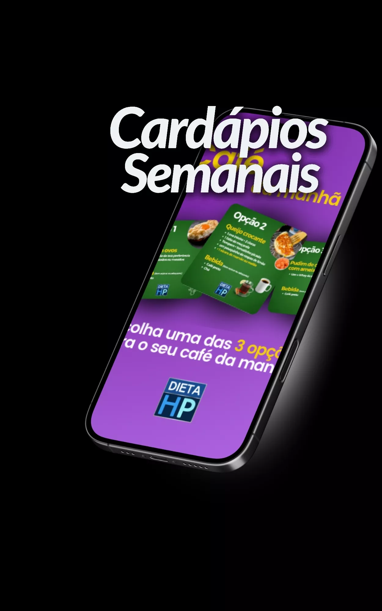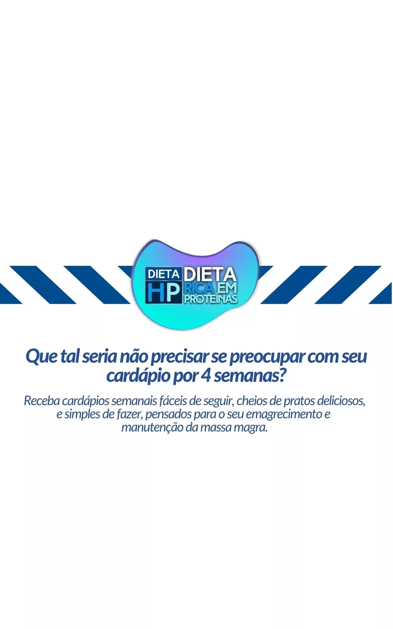 No Dieta HP, você terá um cardápio semanal com sugestões diárias de pratos principais e reforços proteicos.