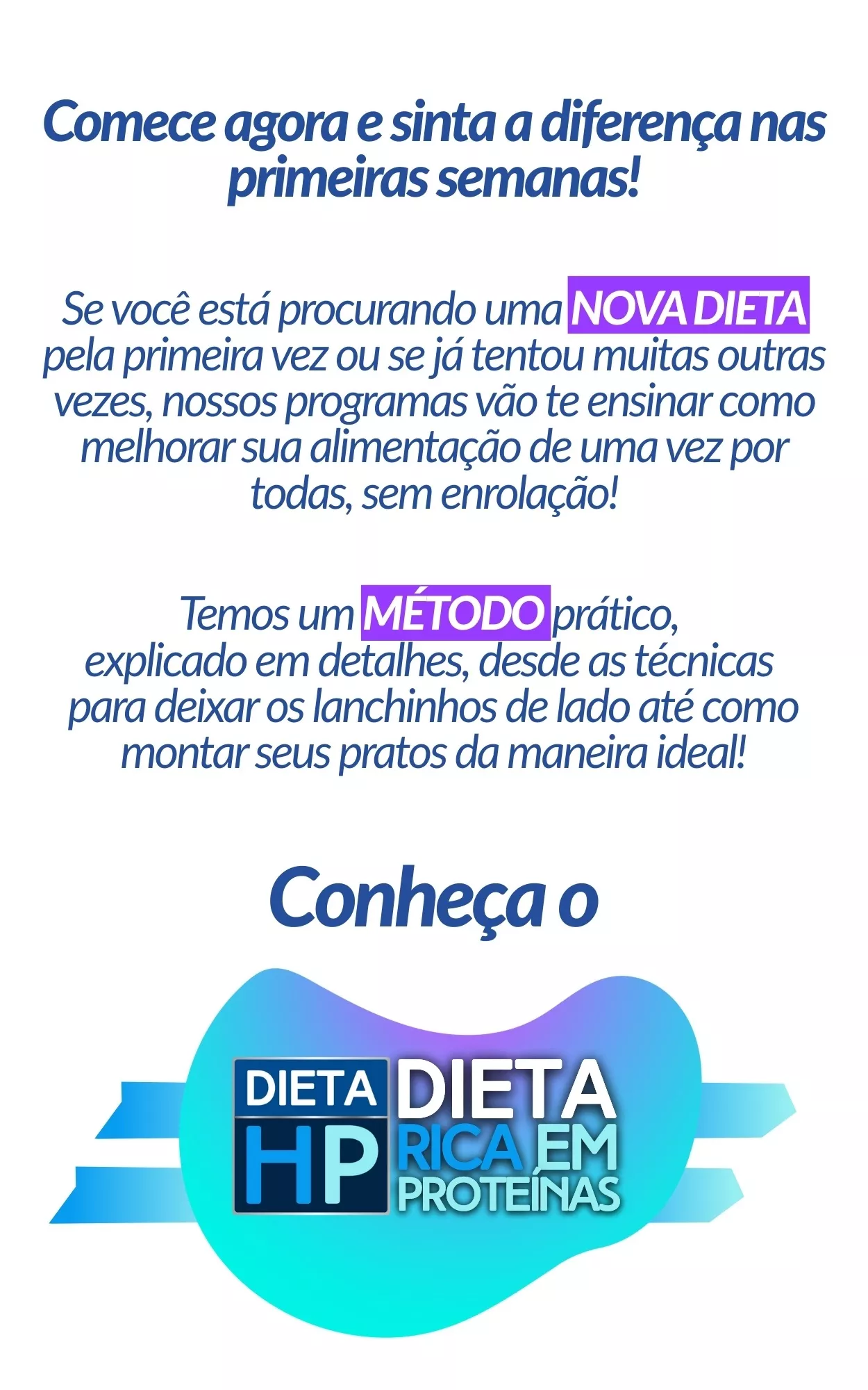 O DIETA HP é o melhor programa pra você começar. São 4 semanas com cardápios diários, com café da manhã, almoço e jantar, com base em refeições protéicas e Low Carb.