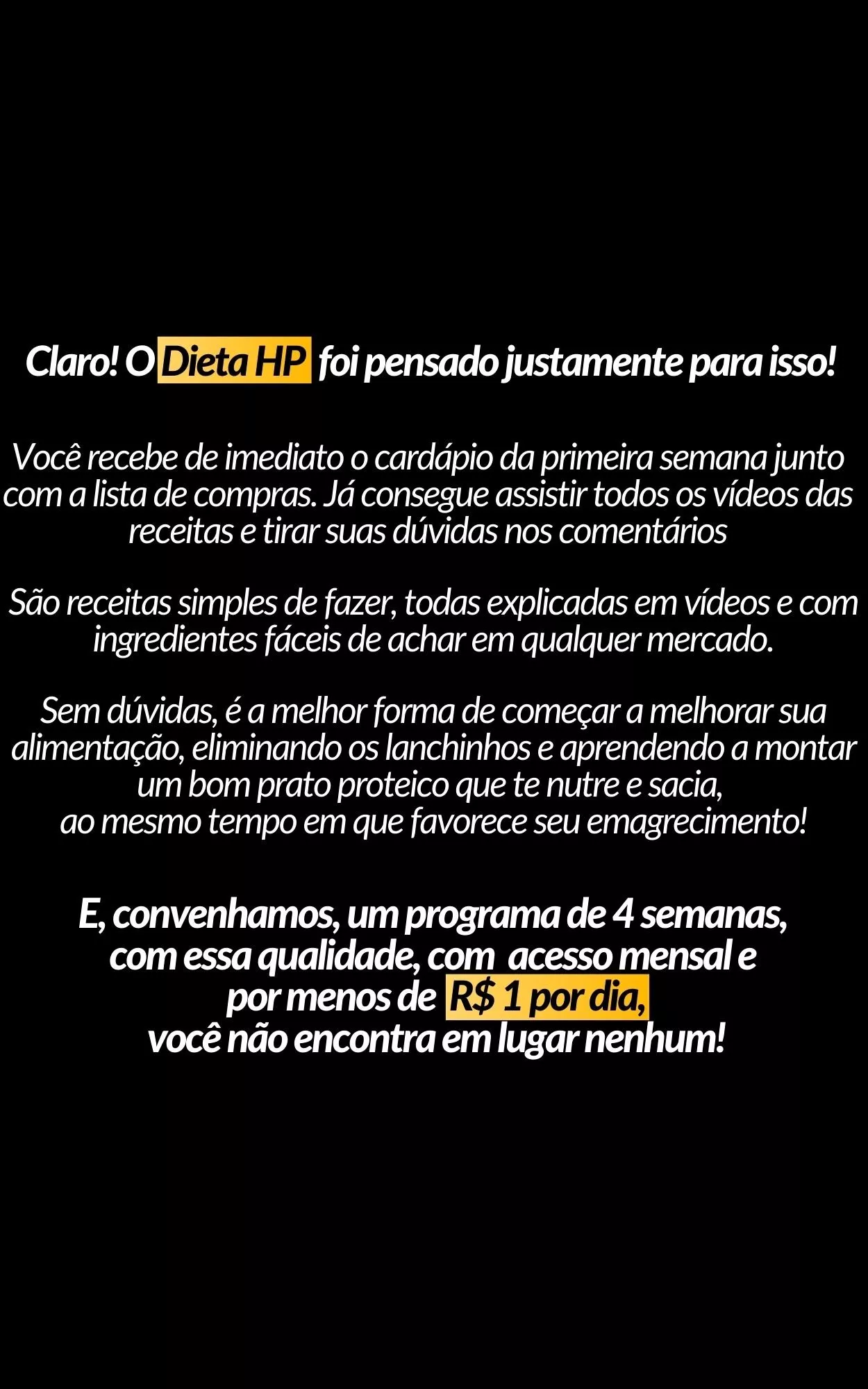 No Dieta HP, você tira suas dúvidas diretamente nos comentários dos conteúdos e tira suas dúvidas técnicas com nosso suporte no WhatsApp.